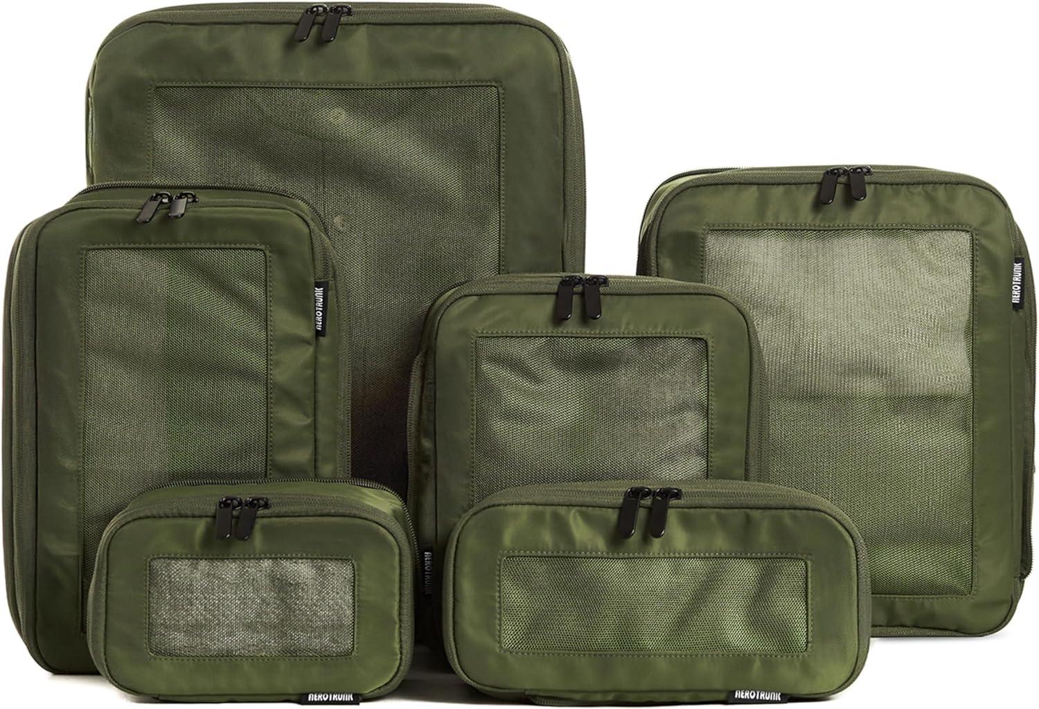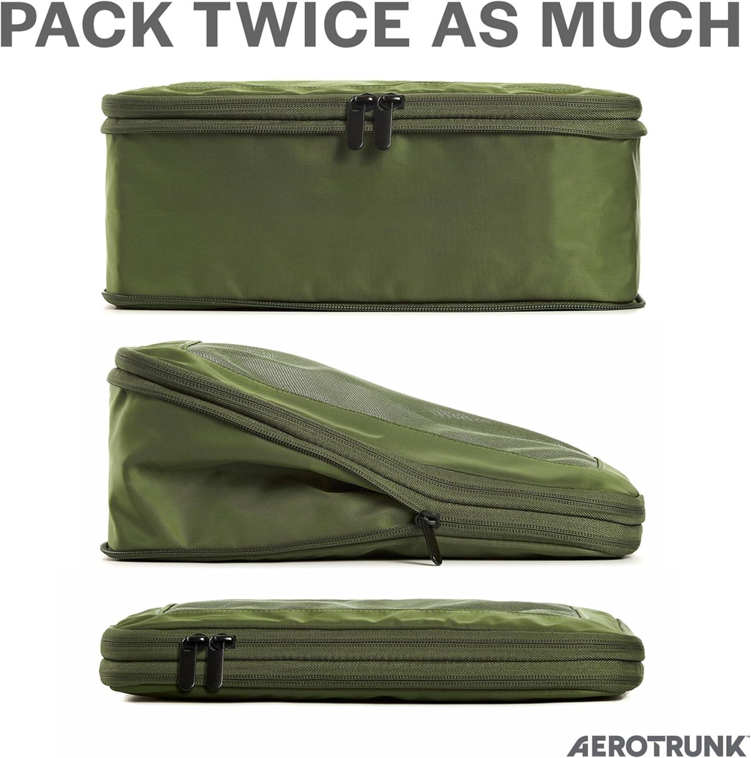Aerotrunk Compression Packing Cubes for Travel – Luggage Organizer Bags – Double Zipper Packing Cubes for Suitcases (4-Pack, Teal)(Olive)
