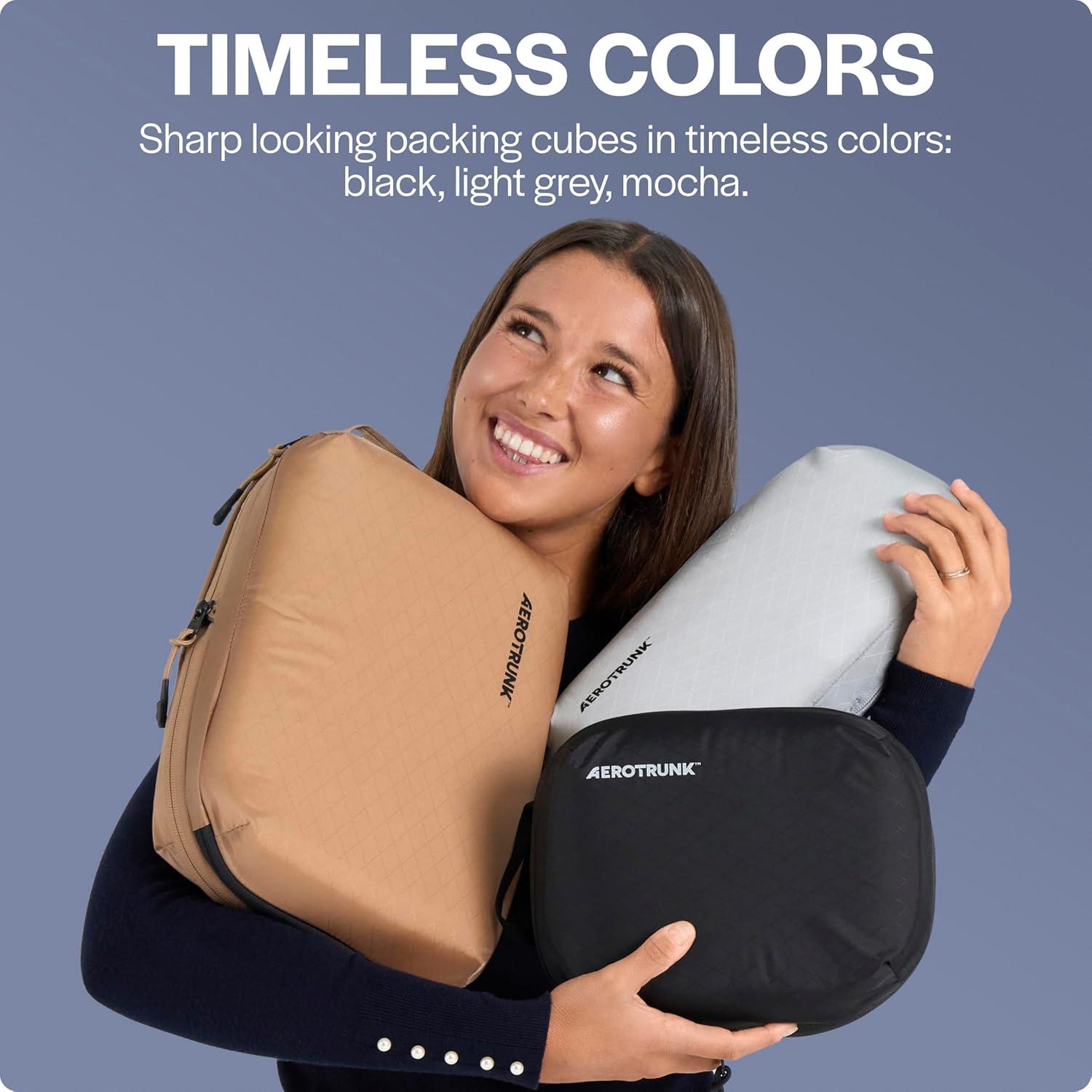 Aerotrunk Ultralight Compression Packing Cubes – Lightweight Travel Organizers for Suitcases and Luggage (3-Pack, Black)(Light Grey)