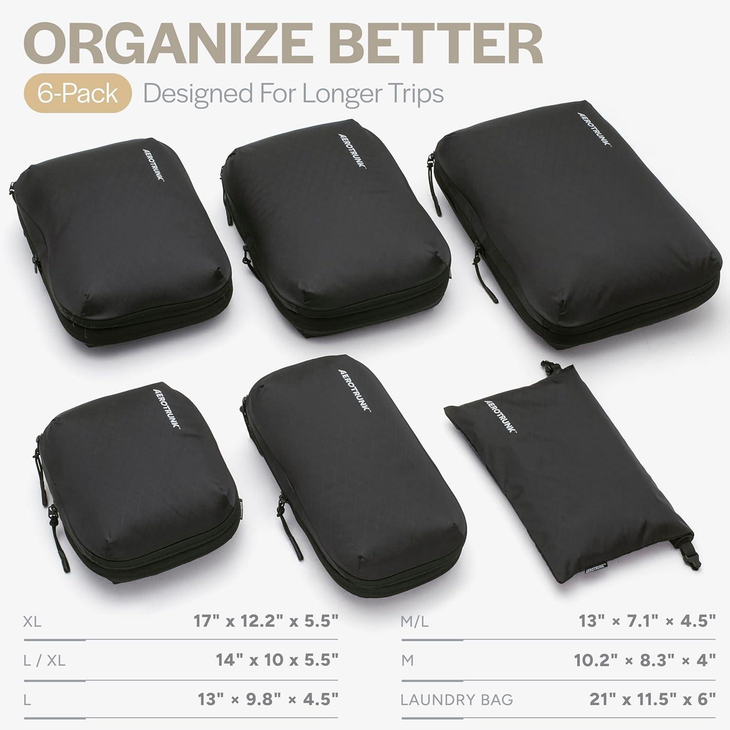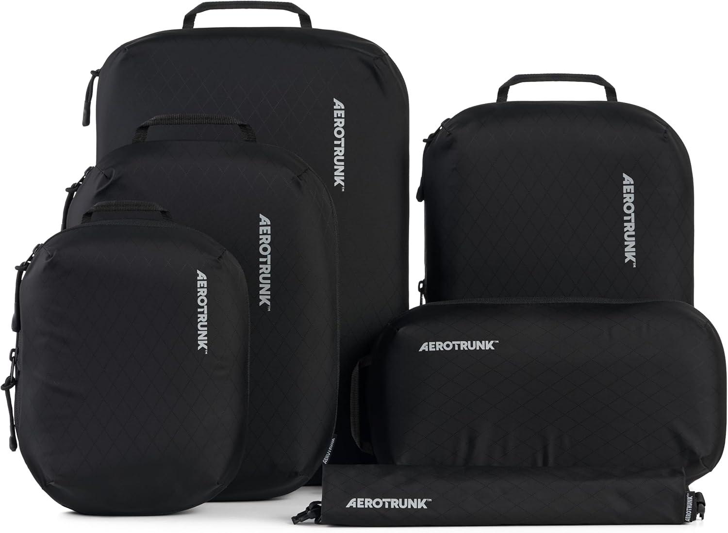 Aerotrunk Ultralight Compression Packing Cubes - Lightweight Travel Organizers for Suitcases and Luggage (6-Pack, Beige)(Black)