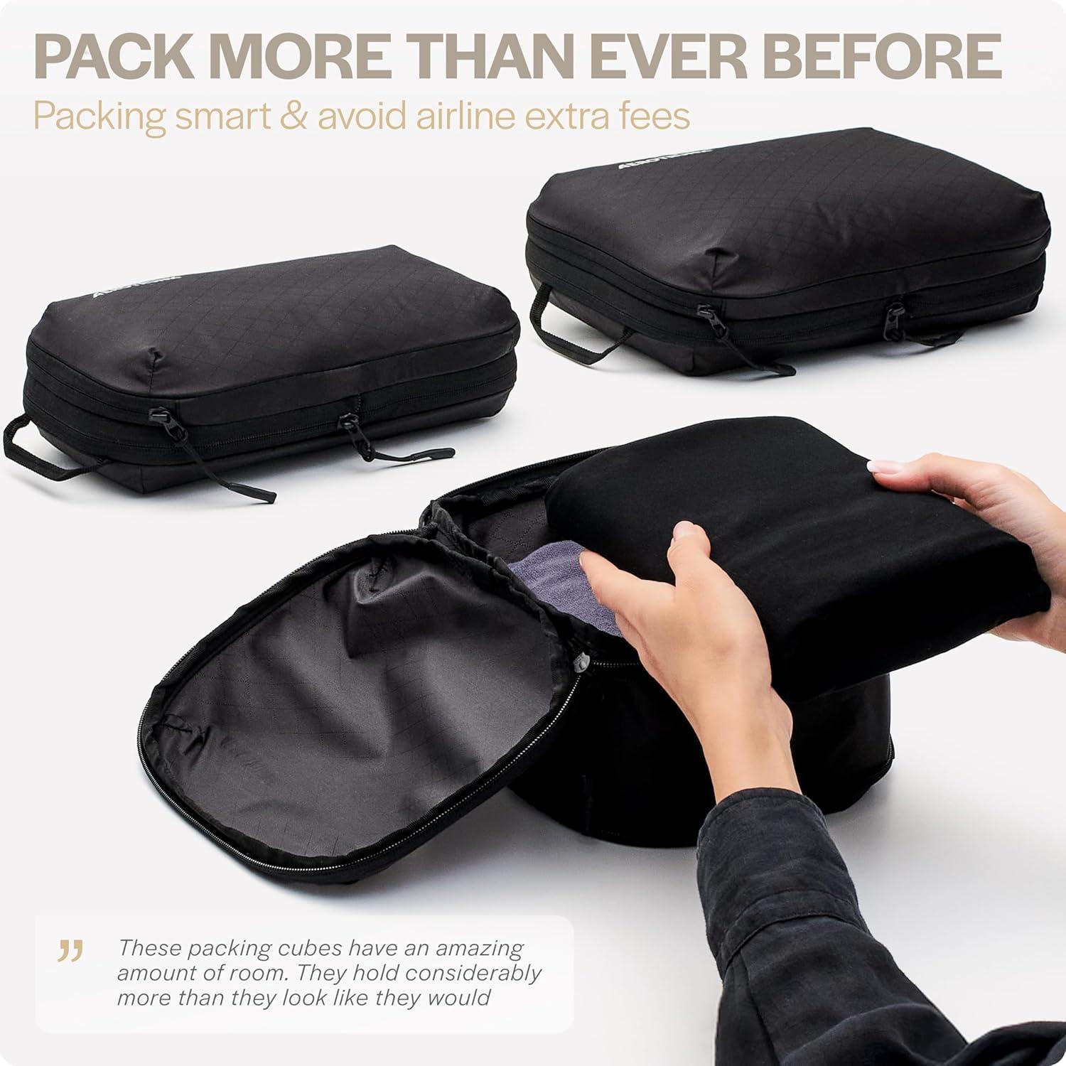 MAXIMIZE YOUR SPACE — These packing cubes for travel compress clothes to fit way more than you’d expect. Pack for long trips without overstuffing. Save space in your suitcase and avoid extra luggage fees. These travel essentials will keep you neatly organized on any trip.
